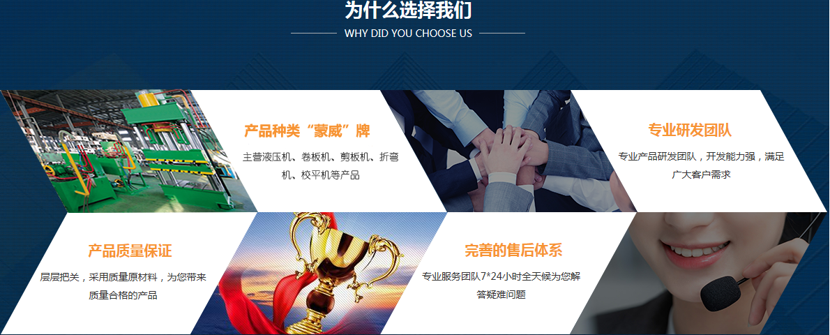 江苏蒙威智能机械有限公司 江苏蒙威智能机械有限公司位于江苏南通海安工业园区。公司主要致力于液压机、卷板机、剪 板机、折弯机、校平机等产品,广泛应用于:轻工、船舶、冶金、仪表、电器、不锈钢制品、建筑及装潢等行业。产品远销欧美、东南亚等国家和地区。 公司拥有液压、卷、剪、折、校平等多位专家,研制开发制造的产品,质量、技术水平位于同行前列,蒙威智能正以超前的意识、全新的理念、创新的精神,引进国外高科技技术,不断研制开发行业产品,为打造世界锻压行业知名产品奠定坚实的基础。 民族工业是经济之魂,机械工业…
